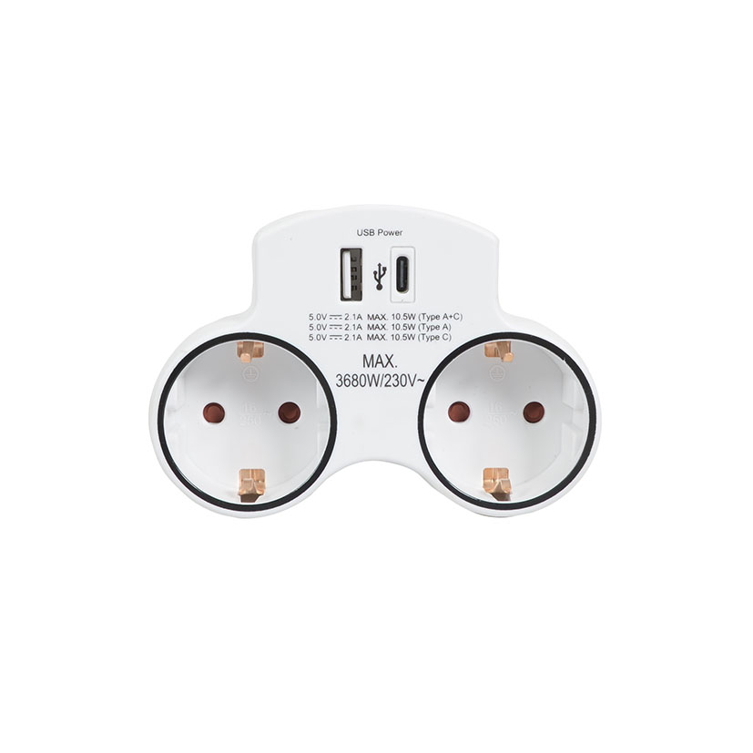 Adaptador enchufe frontal doble USB A+C. DUOLEC16 A – 250 V.