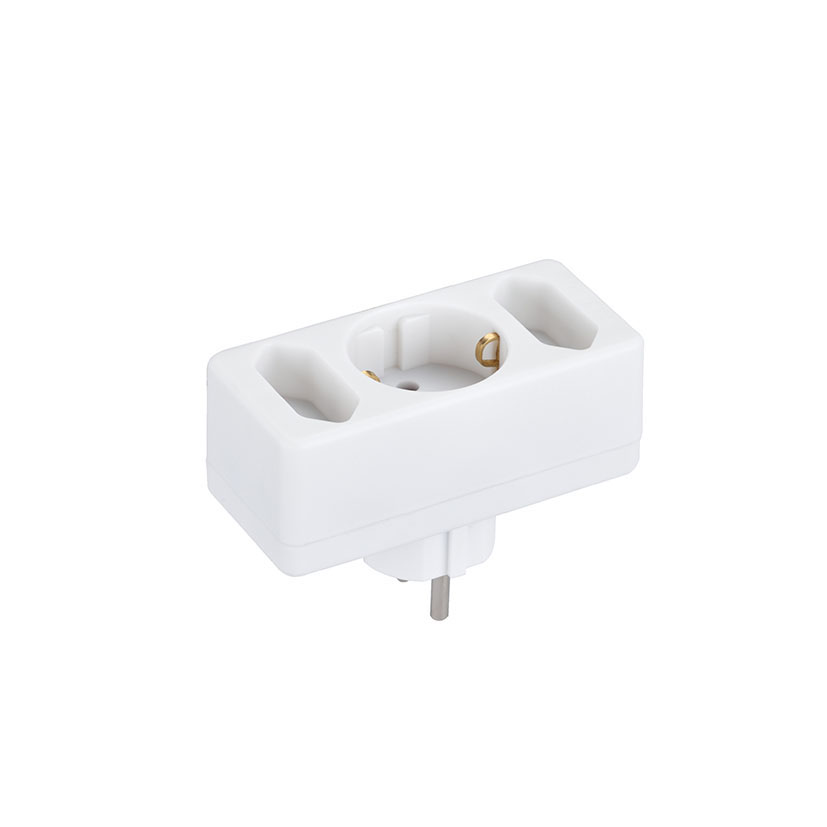 Adaptador enchufe frontal triple DUOLEC.Directo a pared. T/T lateral. 16 A./250 V. Máx. 3.500 W.