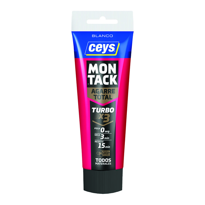 El CEYS Montack Turbo 125?ml es un adhesivo monocomponente de polímero híbrido con tecnología DOUBLE GRIP que ofrece un agarre inmediato, alto relleno y una fijación inmediata en solo 3?segundos, alcanzando su máxima resistencia en 15?minutos.?