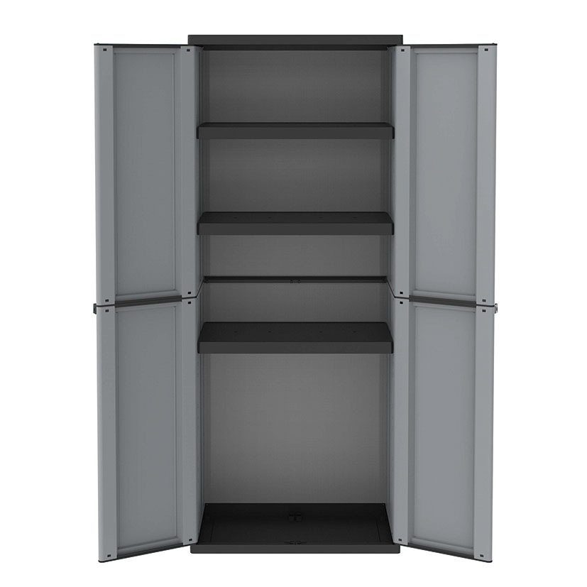Armario de resina JOBGAR serie J-LineMateriales resistentes a la intemperie. Estantes regulables. Color gris/negro. Kit de montaje.