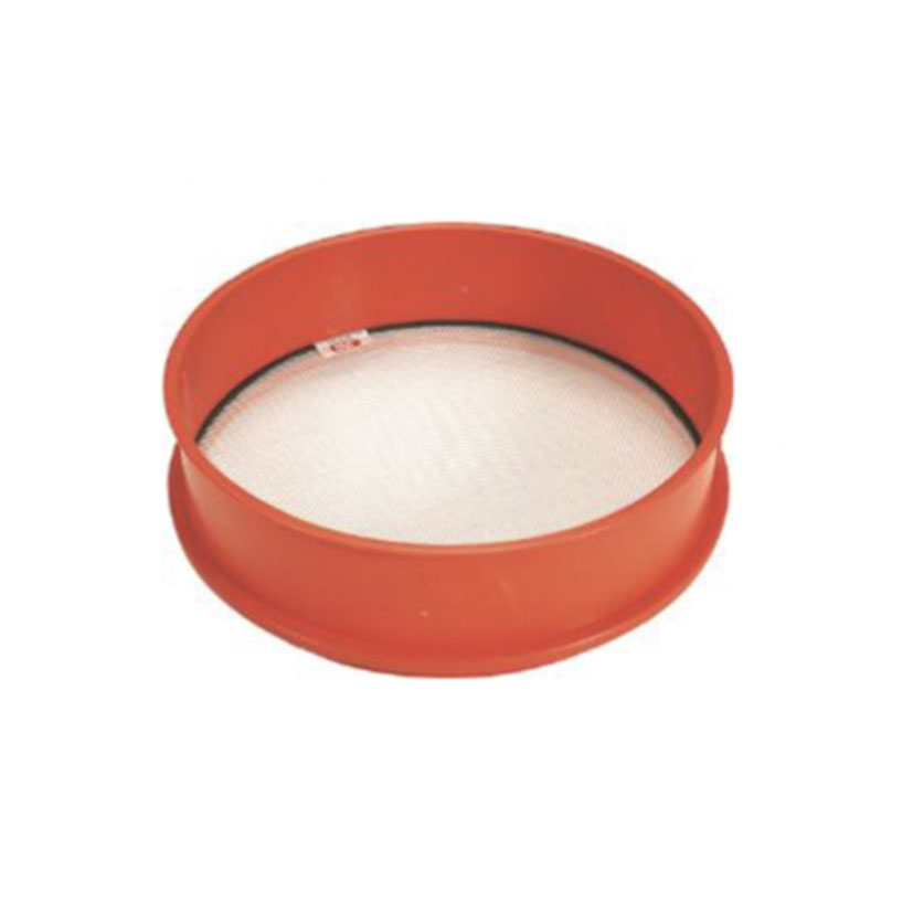 Criba pequeña JARAro de polipropileno en color naranja, con un diámetro de 400 mm y una altura de 120 mm.. Bases de criba metálicas galvanizadas (no inoxs) con el borde en plástico negro.