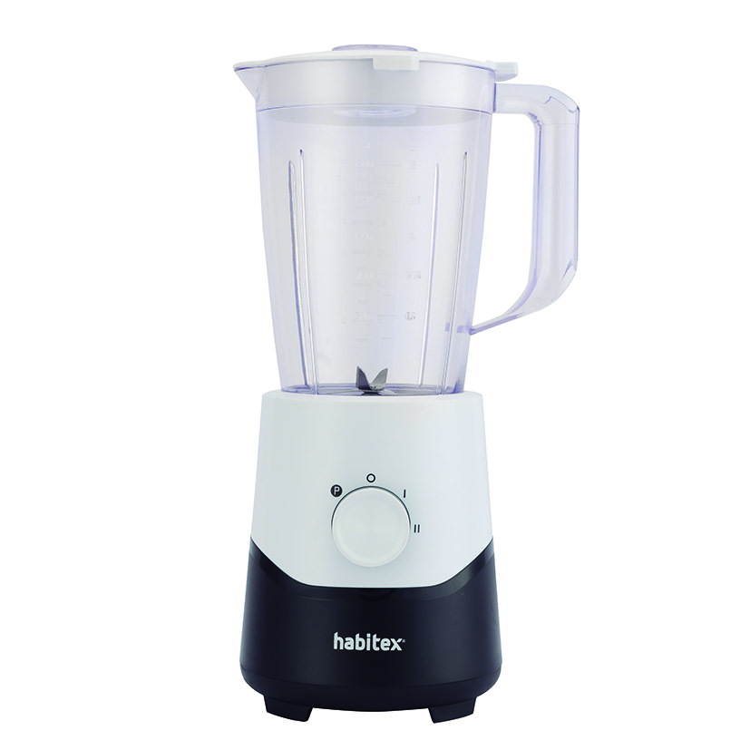 La batidora de vaso HABITEX CC200 ofrece un rendimiento eficiente gracias a su motor de 500 W y cuchillas de acero inoxidable, ideales para batir, triturar y mezclar con precisión. Dispone de 2 velocidades más función turbo para adaptarse a distintos tipos de preparación. Su jarra de 1,5 litros cuenta con sistema de bloqueo para mayor seguridad y estabilidad durante su uso. Incluye una práctica taza medidora para facilitar tus recetas. Diseño compacto con cuerpo de plástico resistente, ideal para el uso diario en tu cocina.