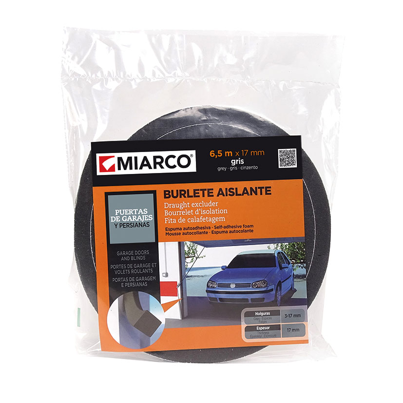 Rollo de 17 mm x 6,5 metros de largo para instalar debajo de la puerta del garaje y evitar que entre agua, viento, humedad, etc.