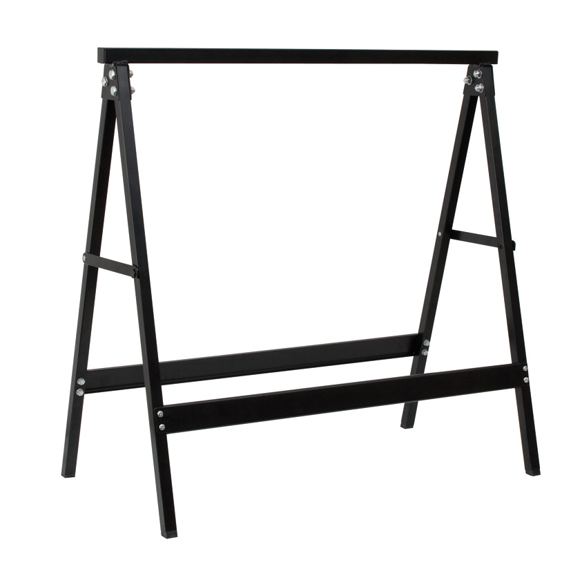 Kit de 2 caballetes fabricados en metal resistente en color negro. Tienen unas dimensiones de 78×40 y una altura de 74 cm. Vienen presentados en una caja.