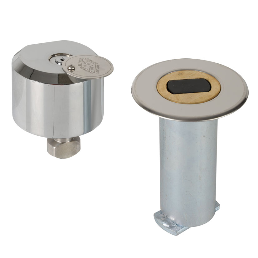 Esta cerradura diseñada para puertas enrollables incluye un cilindro de alta seguridad y viene acompañada de tres llaves codificadas. Se entrega en un estuche protector.