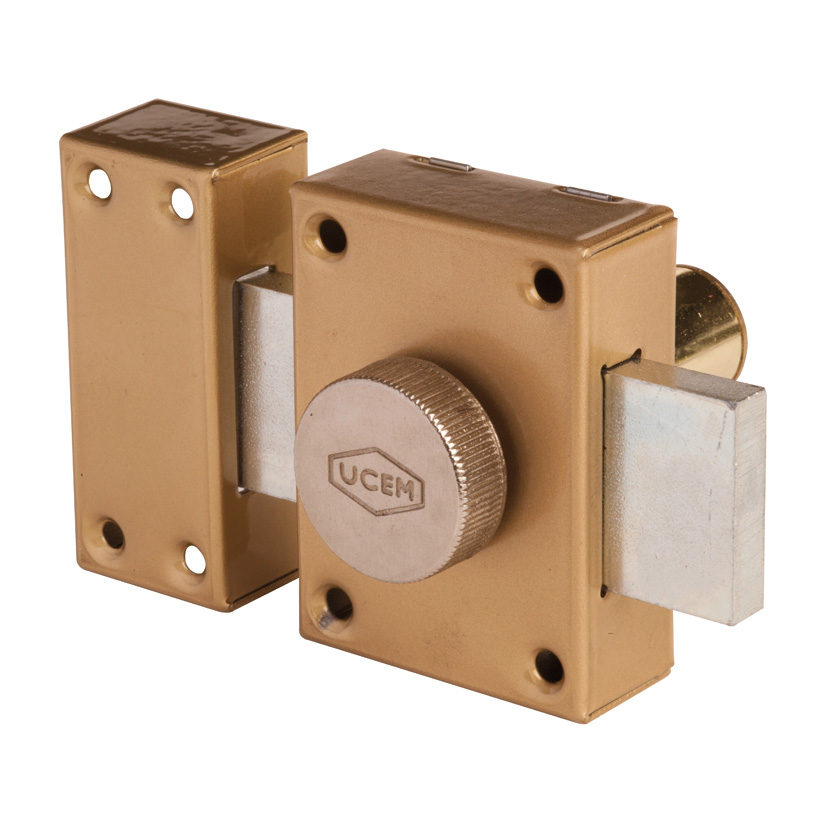 Este modelo incluye un pestillo que se activa mediante llave desde el exterior y cuenta con un botón interior para mayor comodidad. Está equipada con un cilindro 4000F y viene presentada en su empaque original.