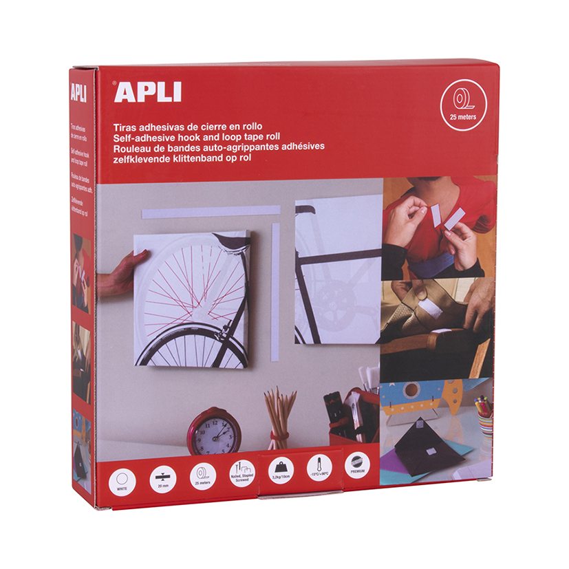 Cinta adhesiva cremallera textil APLI tipo velcro20 mm x 25 m.