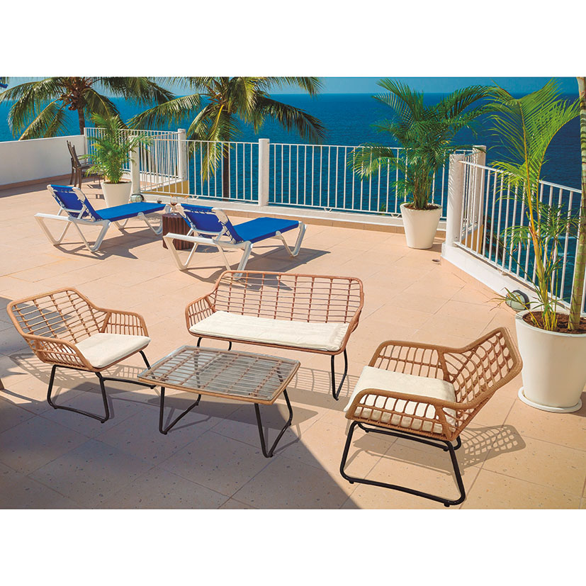 Descubre la excelencia en diseño y comodidad con nuestro conjunto de jardín Sitges, confeccionado en ratán sintético combinando una resistente estructura en acero.