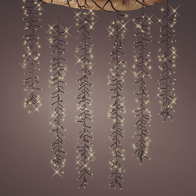 Esta cortina está compuesta por 480 luces de Led blanco cálido. Tendrás un amplio abanico de posibilidades a la hora de decorar cualquier espacio como jardín, terraza, patio o local e incluso tu árbol de navidad. Son de bajo consumo energético y sin costes de mantenimiento. Tiene una impermeabilidad de IP44 y 8 funciones de centelleo. Se presenta en una caja.