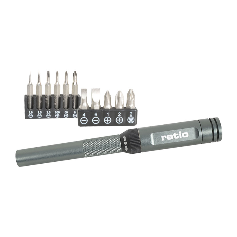 Herramienta muy versátil con 12 puntas diferentes y carraca reversible.