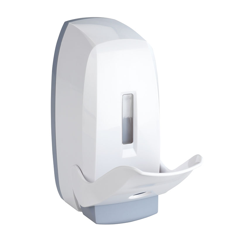 Dosificador diseñado para una aplicación limpia mediante manos o codos. Cuenta con un depósito transparente que permite visualizar el nivel de contenido disponible, facilitando su recarga cuando sea necesario, con una capacidad de 450 ml. Se puede fijar al muro usando tacos y tornillos o mediante cinta adhesiva de doble cara para una instalación sin perforar. Ideal para su uso en áreas públicas. Viene embalado en caja.