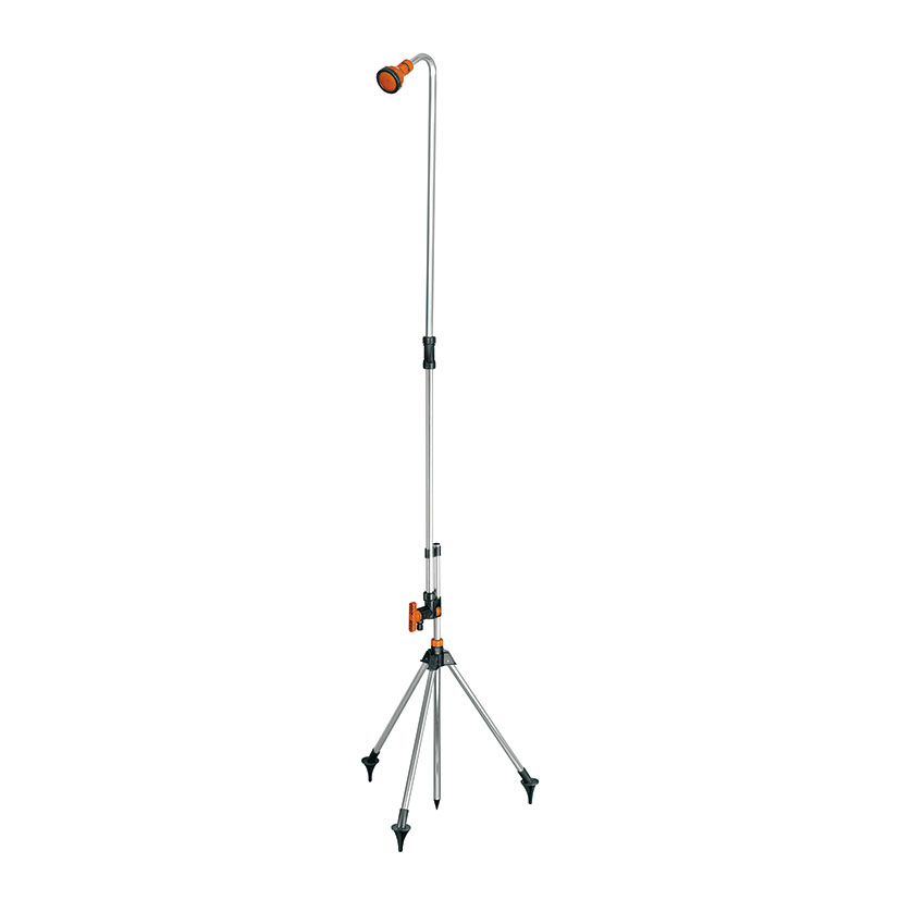 Su estructura tubular está fabricada en aluminio de alta calidad resistente a la corrosión, es ligera y manejable. La altura de la ducha se ajusta hasta 2 metros de altura mediante una palanca. Dispone ve válvula reguladora del caudal del agua. Gracias al trípode, hace que esta ducha sea adecuada para instalarla en cualquier superficie dura.