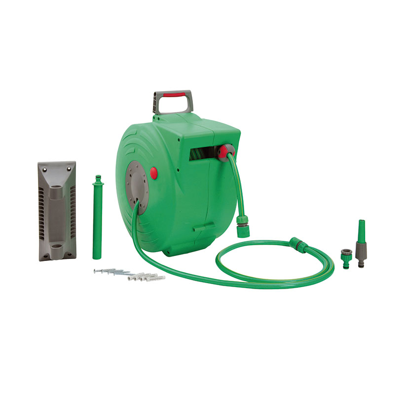Enrollador automático de manguera SUPER-EGO.Soporte mural pivotante. Ajuste fácil de la manguera a la longitud deseada, rebobinado sin esfuerzo. Manguera ø 12,5 mm.