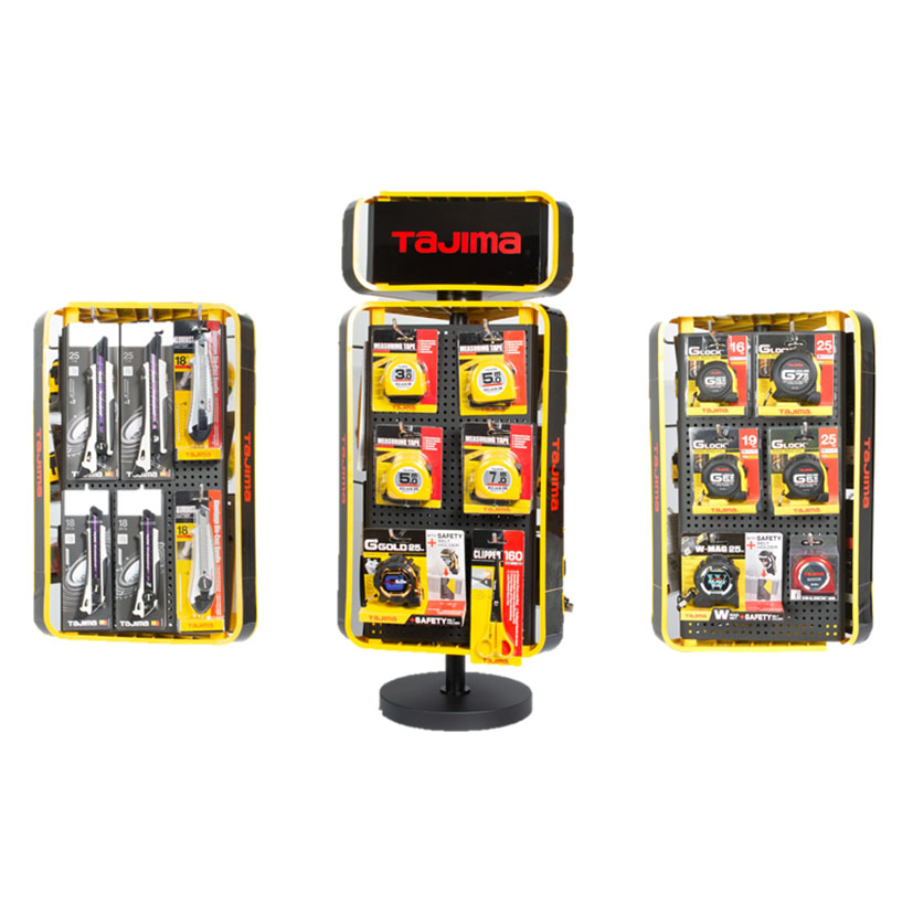 Expositor de sobremesa TAJIMA 1 módulo customizable de 3 caras. Con base redonda.
