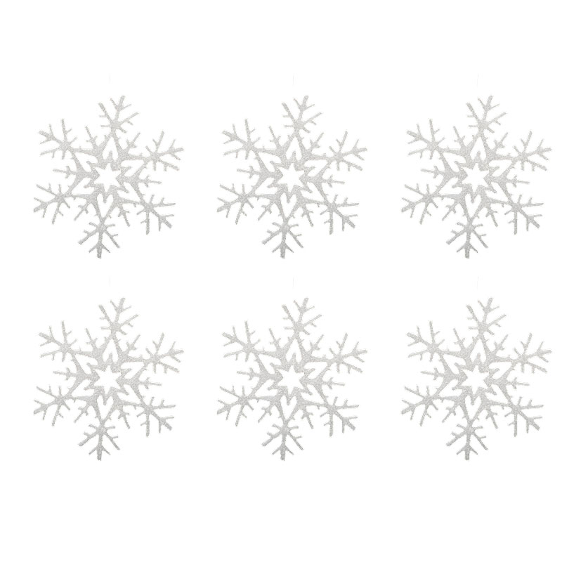 Figura de copo de nieve fabricado en poliestireno en blanco brillante de 20 cm. Se sirven 6 unidades