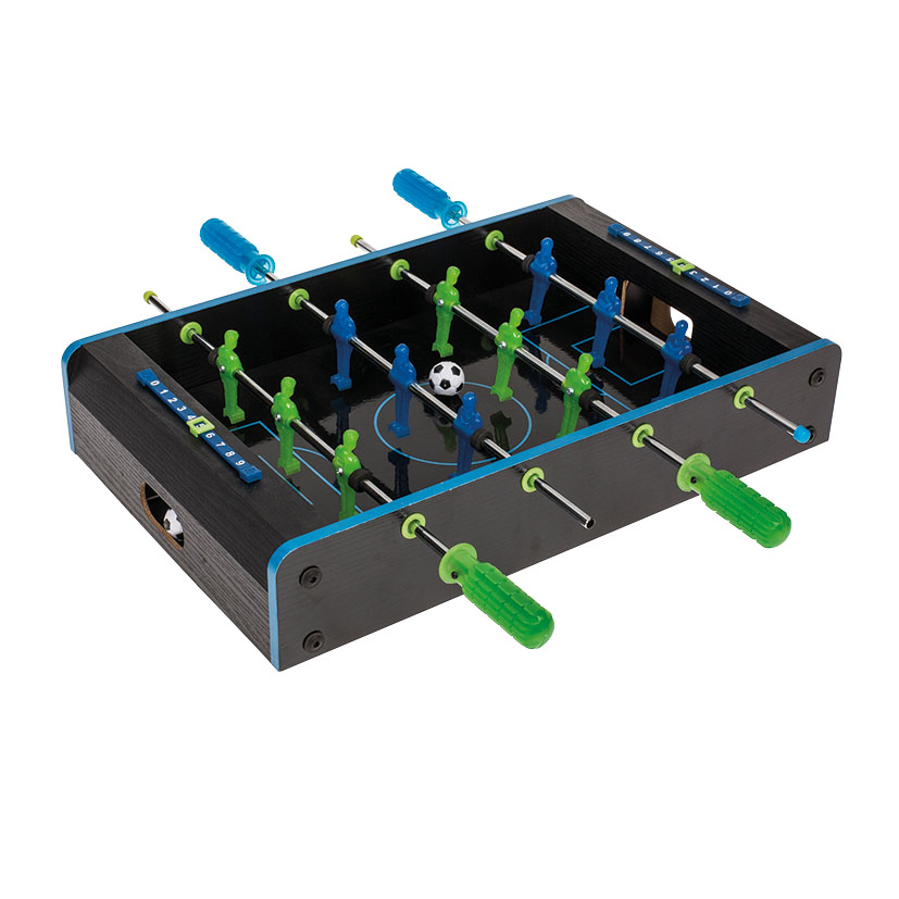 Ideal para todas las edades, este futbolín de mesa garantiza horas de entretenimiento en familia o con amigos.