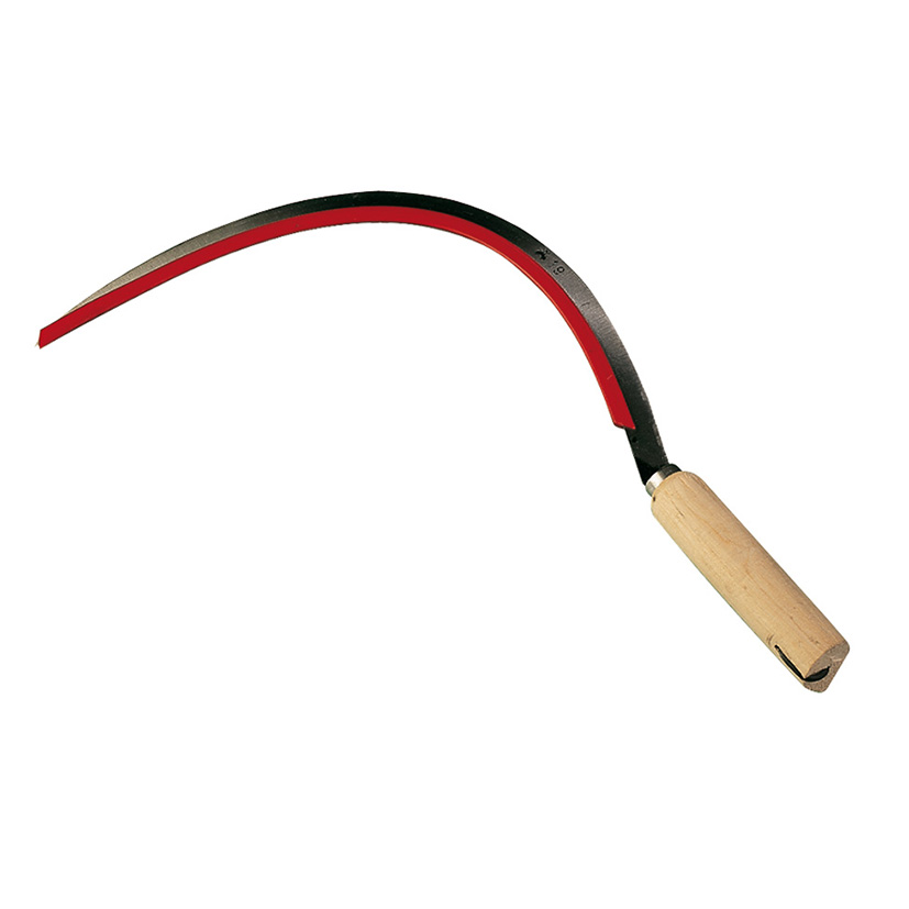 Hoz común LISTA.Dentada, hoja forjada. Mango de madera. Longitud 485 mm.