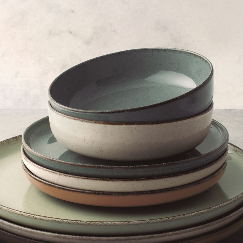 Platos vajilla porcelana PearlJuego 4 unidades en 4 colores surtidos.