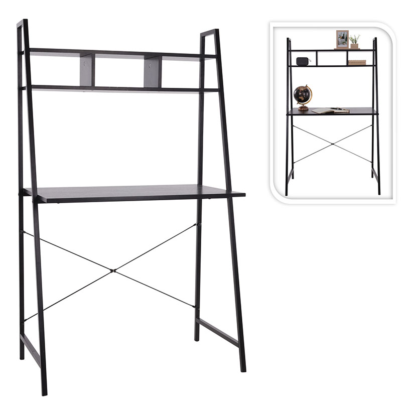 Metálico con sobre mdf y melamina. Estantería superior. Tubo 18 mm. Color negro.