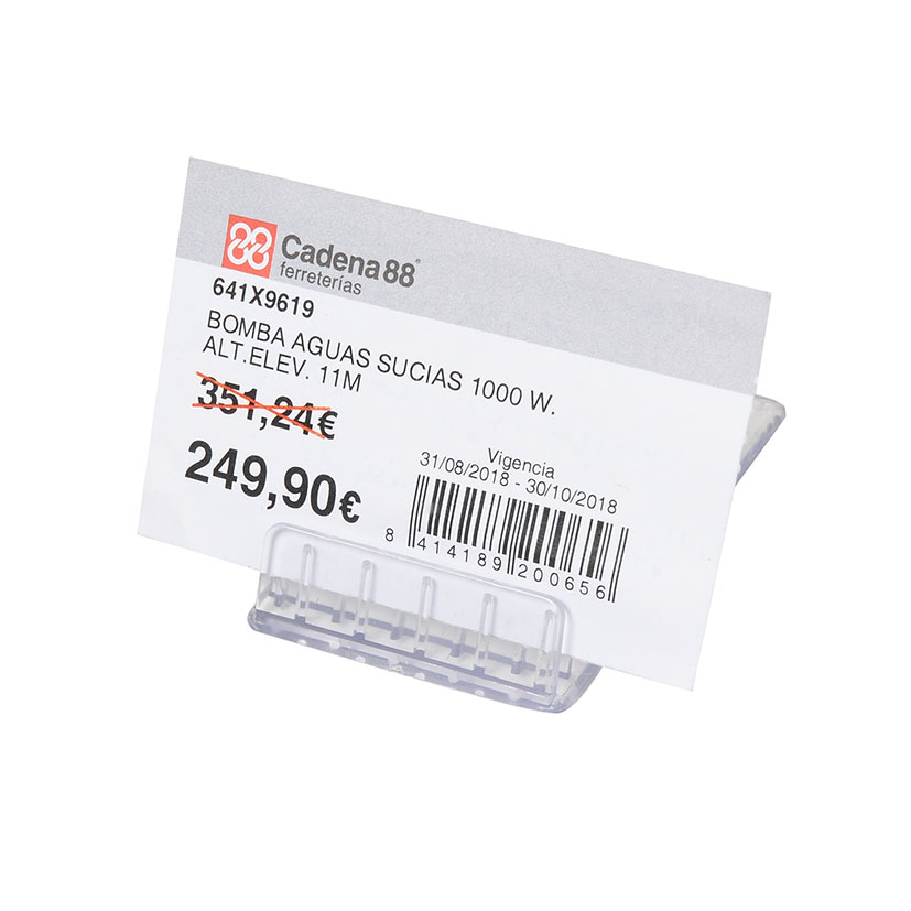 Base plástico transparente. Para marcaje de precios en escaparates y zonas promocionales.