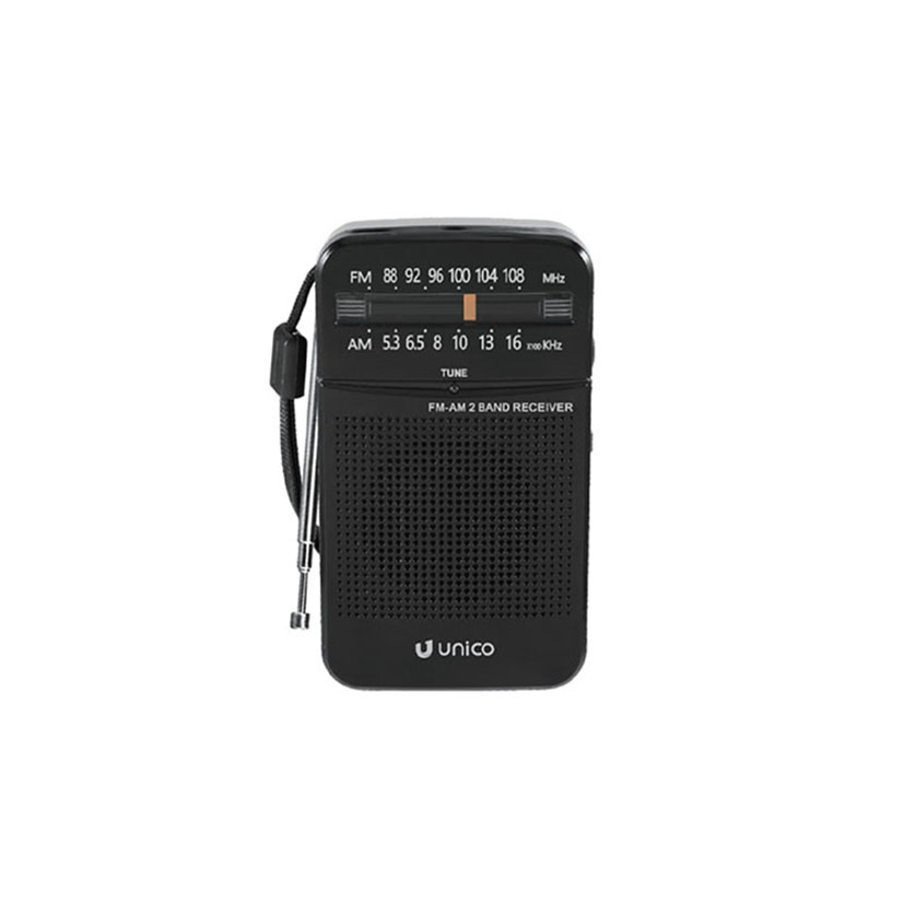 Radio portátil con sintonización AM/FM. Frecuencias FM de 88-108 MHz y AM de 530-1600 kHz. Funciona con 2 pilas AA (no incluidas). Ideal para escuchar la radio en cualquier lugar gracias a su tamaño compacto. Acabado en color negro.