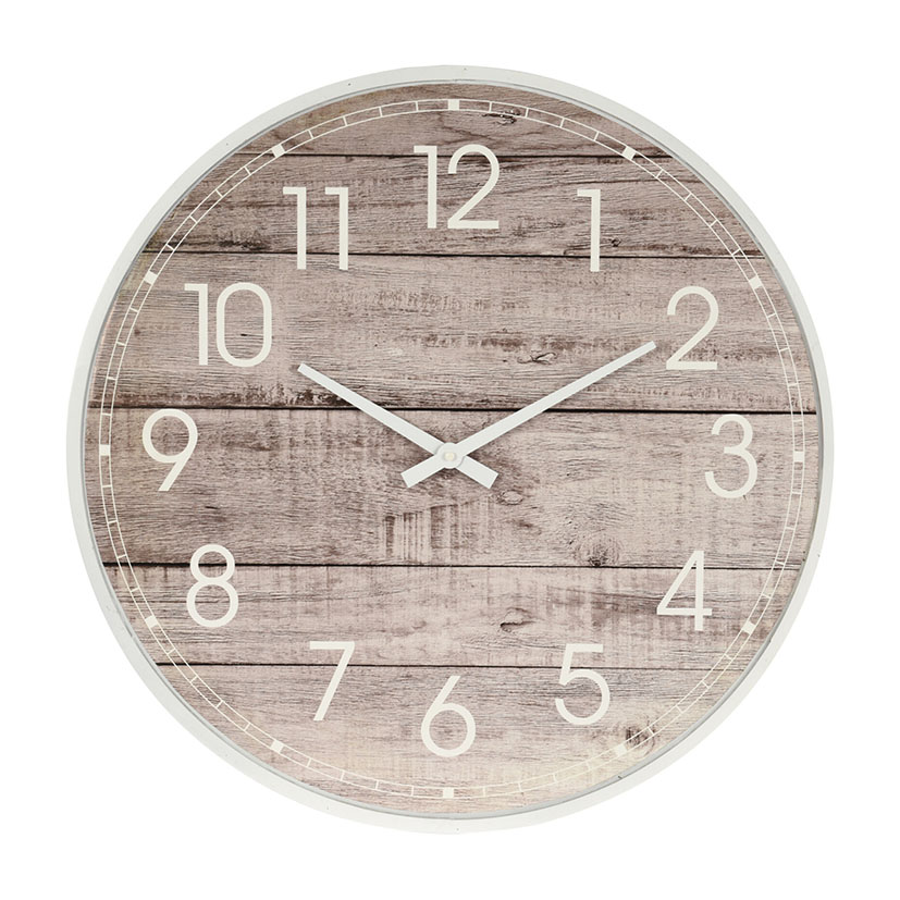 Pieza elegante y funcional que aporta un toque de estilo a cualquier espacio. Fabricado en MDF, su fondo imitación madera ofrece un aspecto natural y cálido que se integra fácilmente con diversas decoraciones. Sus agujas y números en color blanco proporcionan un contraste claro y fácil de leer. Con un diámetro de 59,5 cm, es ideal para espacios grandes y llamativos. Funciona con una pila AA (LR06), que no está incluida.