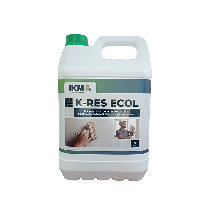 La resina puente de unión IKM K-RES ECOL es un producto de viscosidad media-alta especialmente formulado para actuar como puente de adherencia en superficies porosas de mortero, hormigón y yeso. Su aplicación evita la necesidad de picar la superficie antes de aplicar una nueva capa de reparación o revestimiento, mejorando la cohesión y durabilidad del anclaje.