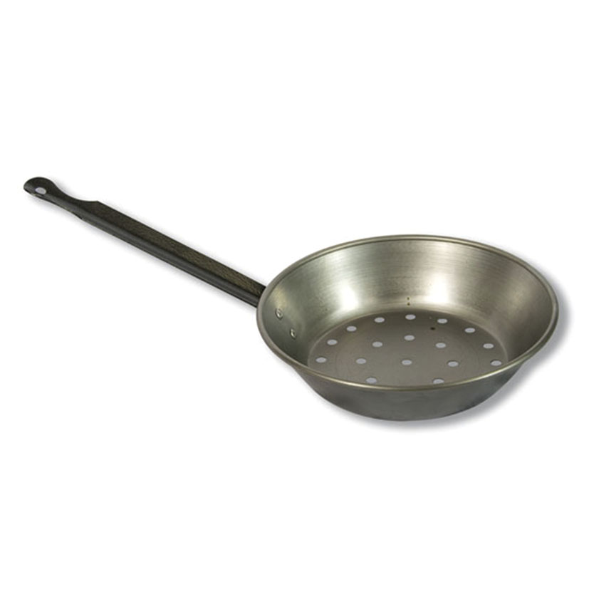 Esta sartén está diseñada y es especial para asar las castañas. Gracias a los agujeros de su base, el calor y el humo pasan directamente a las castañas y se asan perfectamente. Tiene una medida de 24 cm de diámetro.