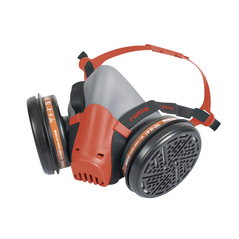 Fabricado en caucho termoplástico. Diseño que permite un ajuste estanco a la cara, impidiéndose las fugas de aire hacia el interior a través de la unión mascarilla/cara. En el cuerpo van alojados los dos conectores del filtro y la válvula de exhalación. Factor de protección nominal (FP): 50. Normativa: EN140:1998. Organismo de control: 0082.