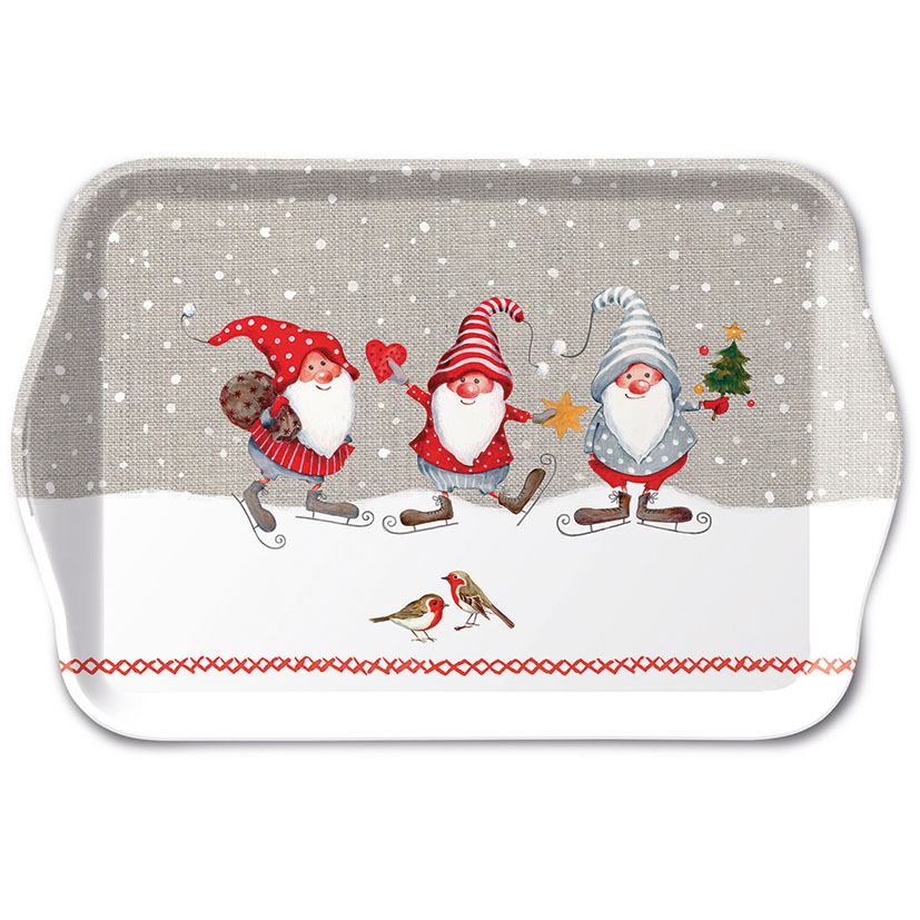 Decoración mesa navideña serie Skating DwarfsTextil decorado 100% algodón.