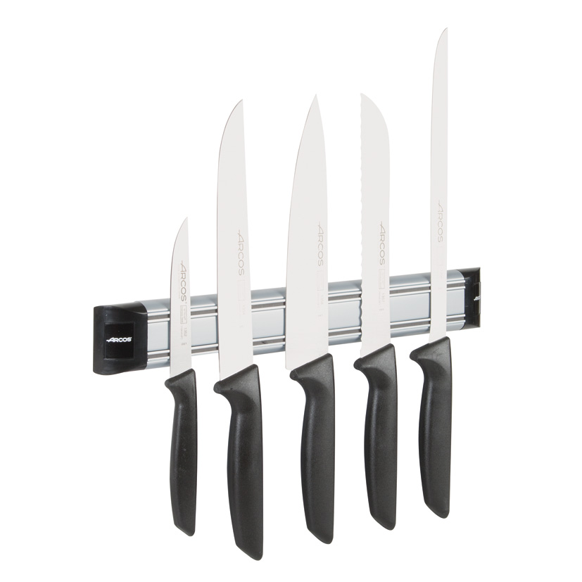 El soporte magnético ARCOS te permitirá tener todos los cuchillos que más utilizas de una forma ordenada y tenerlos siempre a mano cuando tengas que elaborar tus recetas de cocina. Este complemento de cocina tiene unas medidas de 30×4,5 cm. Viene presentado en doble blíster.