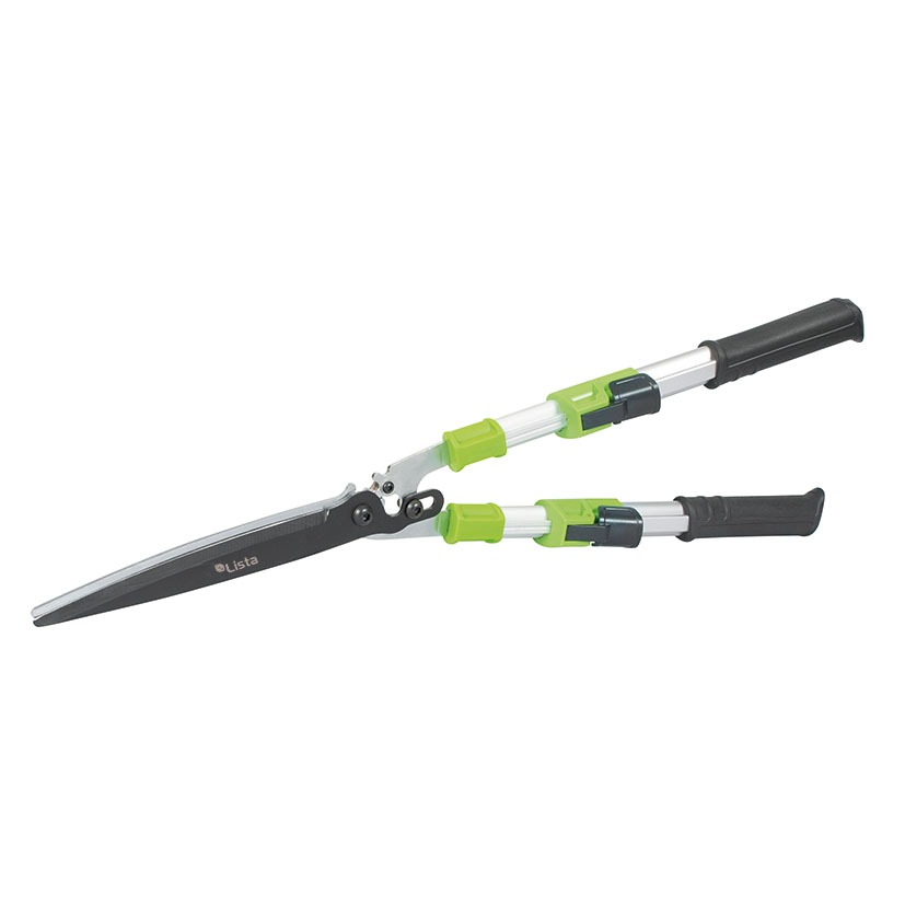 Tijera cortasetos con brazos telescópicos ajustables entre 74 y 84 cm, diseñada para alcanzar mayor distancia y facilitar el corte de setos y arbustos. Con hojas rectas que incorporan un recubrimiento antiadherente en la hoja superior para cortes más suaves y sin obstrucciones. Fabricadas en acero totalmente endurecido y rectificado con precisión, garantizando un filo duradero para cortes precisos. Los brazos son tubulares y telescópicos en aluminio con empuñaduras ergonñomicas recubiertas con material antideslizante para un agarre seguro y cómodo. Gracias a su sistema de desmultiplicación de fuerza, reduce el esfuerzo necesario y maximiza la eficiencia al cortar. Se presenta en una placa.