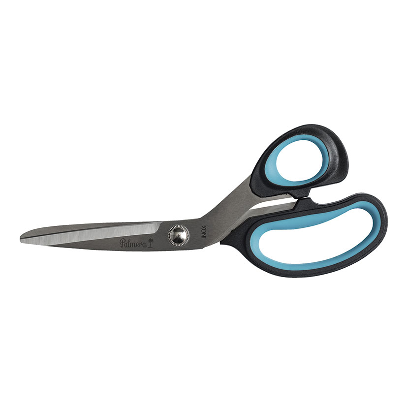Esta tijera de sastre PALMERA está fabricada en acero inoxidable AISI 420. Gracias a sus hojas de dureza 52-54 HRC hacen que sea muy resistente y de gran durabilidad. Los mangos son bicomponente y ergonómicos para un buen agarre. El ensamblaje con tornillo bloqueado es idóneo para evitar que se afloje. Incluye una funda plástica individual y viene presentada en un blíster.