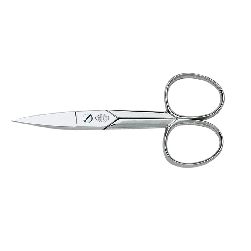 Esta tijera niquelada ofrece una hoja con curva diseñada especialmente para dar forma a las uñas y viene acompañada de una funda individual que facilita su almacenamiento y protege el instrumento.