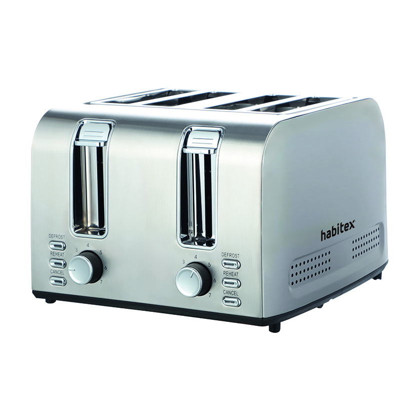 El tostador HABITEX SC212 permite preparar hasta 4 rebanadas a la vez, ideal para familias o desayunos rápidos. Con carcasa de acero inoxidable y 7 niveles de tostado, ofrece funciones de recalentar, descongelar y cancelar. Incluye bandeja recogemigas extraíble para una limpieza práctica y cómoda. Tiene 3 años de garantía y viene presentado en una caja.